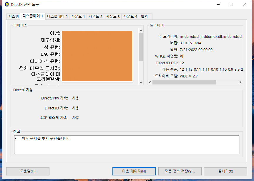 2. dxdiag 로 확인 하는법