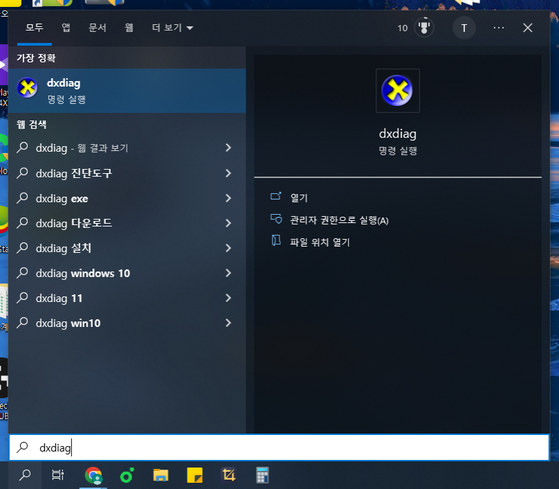 2. 'dxdiag' 명령어 입력