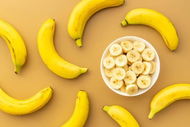 바나나에 함유되어있는 당질은 포도당 및 과당과 자당, 전분 등 다량 들어있는데 이는 체내에 에너지가 되는 것부터 장시간 지속되는 당질이 함유되어 있습니다. 또 칼륨 함량이 높아 근육이 강화되고 운동이 끝난 후에도 근손실을 방지하는데 도움을 줍니다.