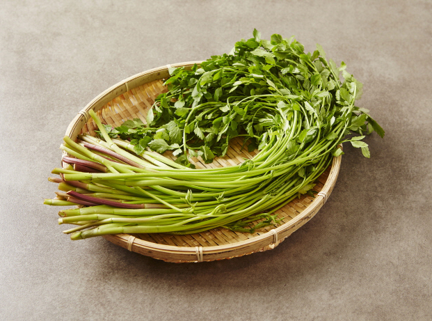 미나리는 우리 몸의 전체적인 혈관계통을 맑게 정화시켜 주는 기능이 강해 혈압이나 콜레스테롤 수치 경감 효과가 있어 심혈관 질환에 효과적이라고 알려져 있습니다.
